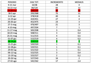 25-31 maggio: media di nuovi casi più bassa di sempre