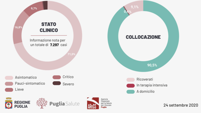 Il totale dei casi positivi Covid in Puglia è di 7.304, così suddivisi: