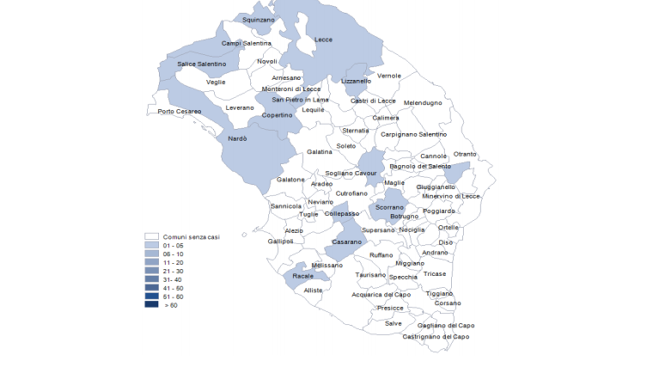 Sedici in provincia di Lecce, come è scritto nero su bianco nel report della Asl di Lecce, a cura del dott. Fabrizio Quarta, Direttore U.O.C. Epidemiologia e Statistica.