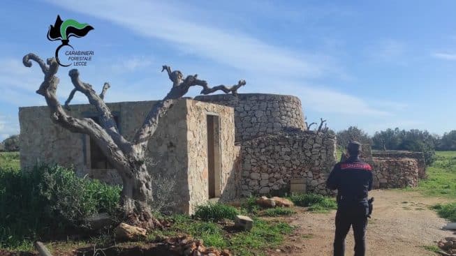 L’ultimo episodio si è verificato in agro di Alliste, in località “Malaspina”, dove i Militari del Nucleo Forestaledi Gallipoli, con l’ausilio di un drone hanno individuato la presenza di un cantiere edile, dove erano in corso i lavori per la costruzione, in via di ultimazione, di un fabbricato in pietra monovano, della superficie di circa 20 metri quadri, addossato ad una tipica “pajara”. All’esterno era stato invece creato un piazzale con pietrisco livellato e spianato, per una superficie di circa 350 metri quadri.