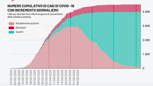 Dopo il decesso di ieri, poi, torna a fermarsi la conta dei lutti, che così resta a quota 546. Piccolo balzo in avanti, invece, i guariti: nelle ultime 24h sono sono stati 2, con la conta generale che in questo modo sale a 3.912. Tutto questo porta il dato degli attuali positivi a scendere ancora: ad oggi sono 78. Di questi, 14 si trovano in stato di ricovero (nessuno in terapia intensiva).
