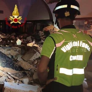 Le lancette dell’orologio avevano da poco segnato le 23.00, quando i vigili del Fuoco del distaccamento di Tricase sono stati chiamati per il crollo della campata di un solaio di una struttura utilizzata, in passato, come bar e ristorante. I caschi rossi, giunti a Cardigliano, sulla provinciale che da Miggiano conduce a Taurisano, hanno cercato, con l’aiuto delle unità cinofile, eventuali persone rimaste sotto le macerie, ma la ricerca andata avanti fino a notte fonda ha dato esito negativo.