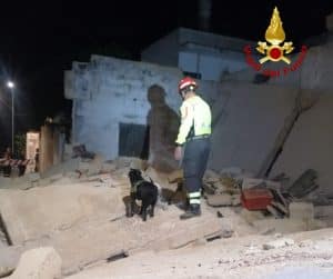 Per escludere che vi fossero persone sotto le macerie, sul posto è giunto il personale del Nucleo Cinofili dei Caschi Rossi che ha ispezionato l’intera zona.