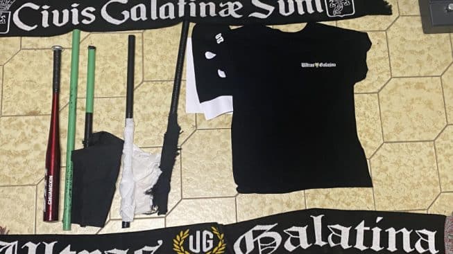 L’immediata indagine svolta dal Commissariato di Galatina e concentratasi sin da subito sulla visione delle immagini girate durante la partita e all’esterno dell’impianto sportivo, ha permesso di identificare nell’immediatezza tre responsabili, che nella giornata successiva ai disordini, sono stati sottoposti a perquisizione domiciliare, al termine della quale sono state sequestrate maglie, sciarpe e passamontagna utilizzati per celare i volti e aste da bandiere utilizzate per il tentativo di assalto alla tifoseria avversaria.