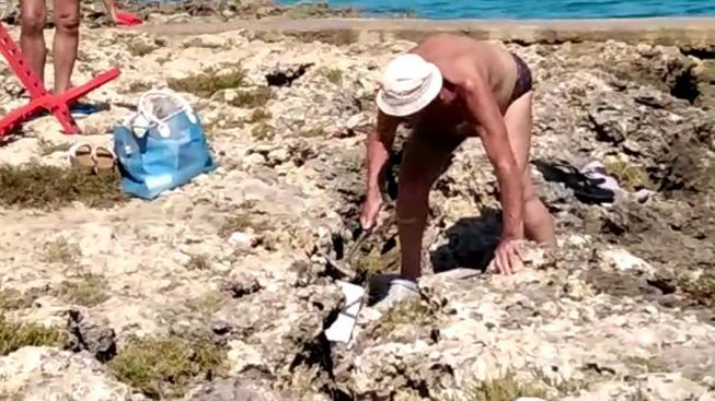 Avrebbe voluto costruire un’agevole passerella per l’accesso in mare, lavorando a colpi di piccone la scogliera di Lido dell’Ancora, un tratto a nord della costa neretina, in piena zona “A” dell’Area Marina Protetta di Porto Cesareo e Nardò, ma fortunatamente l’intervento degli agenti di Polizia Locale ha sventato il peggio, limitando i danni solo a qualche scalfittura della roccia, in un tratto di costa tra le più preziose dal punto di vista naturalistico.