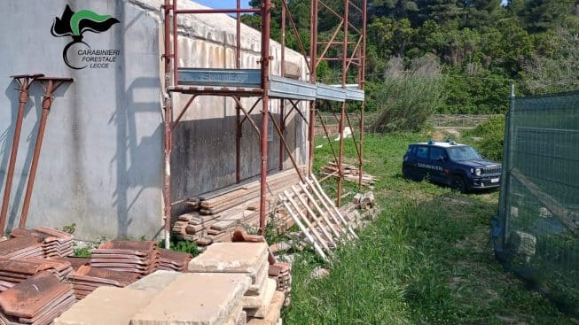 Come detto, per le opere non era stato rilasciato alcun permesso di costruire, né tantomeno autorizzazione paesaggistica; pertanto i Carabinieri Forestali hanno deferito alla Procura della Repubblica di Lecce, in concorso, 3 persone: il 49enne proprietario (e committente dei lavori) degli immobili, il progettista e direttore dei lavori ed il rappresentante legale della ditta esecutrice; sono stati loro ascritti i reati di cui all’ art. 44, comma 1, lett. c) del Decreto del Presidente della Repubblica n. 380 del 2001 (Testo Unico dell’ Edilizia e dell’ Urbanistica), ed all’ art. 181, comma 1, del Decreto legislativo n. 42 del 2004 (Codice dei Beni Culturali e del Paesaggio – cosiddetto “Codice Urbani”).