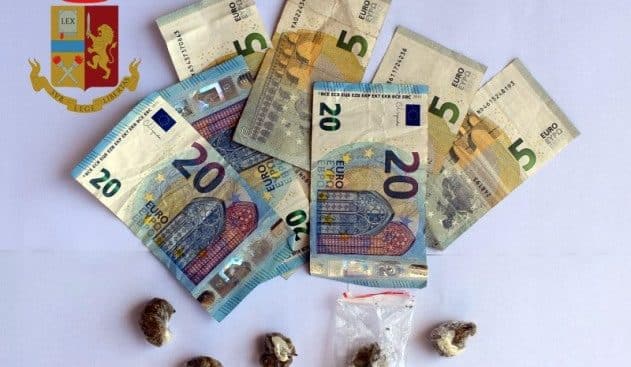 All’interno di un contenitore in metallo conservato nella tasca dei pantaloni, aveva 5 dosi di marijuana e nell’altra tasca i soldi, probabile provento di spaccio.