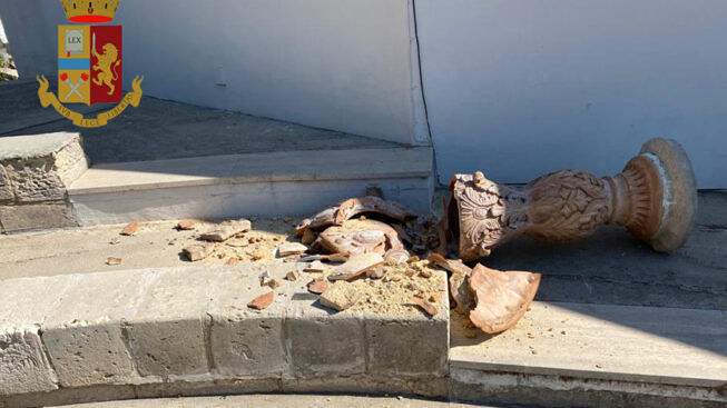 Prima di arrivare al mare, però, uno dei ragazzi della comitiva, passando dal piccolo luogo di culto, ha pensato bene di entrare e, dopo aver tentato di buttare giù l’altare, senza riuscirvi, ha scaraventato a terra l’acquasantiera, rompendola in tantissimi pezzi con il solo scopo di compiere un atto goliardico alla presenza degli altri amici che lo hanno ripreso con il cellulare.