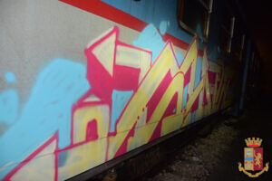 Le lancette dell’orologio segnavano all’incirca le 03.00, quando, presso la sala operativa di “Viale Otranto” è giunta una segnalazione telefonica da parte di un dipendente dell’Agenzia di Vigilanza Alma Roma, che durante l’attività di controllo dei treni parcheggiati nella stazione, all’altezza dei binari 7/8, aveva notato due ragazzi intenti a imbrattare con vernice spray un vagone del treno della compagnia Ferrovie Sud Est parcheggiato, il vigilantes è riuscito a bloccare uno dei due, mentre l’altro si è dato alla fuga.