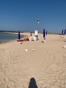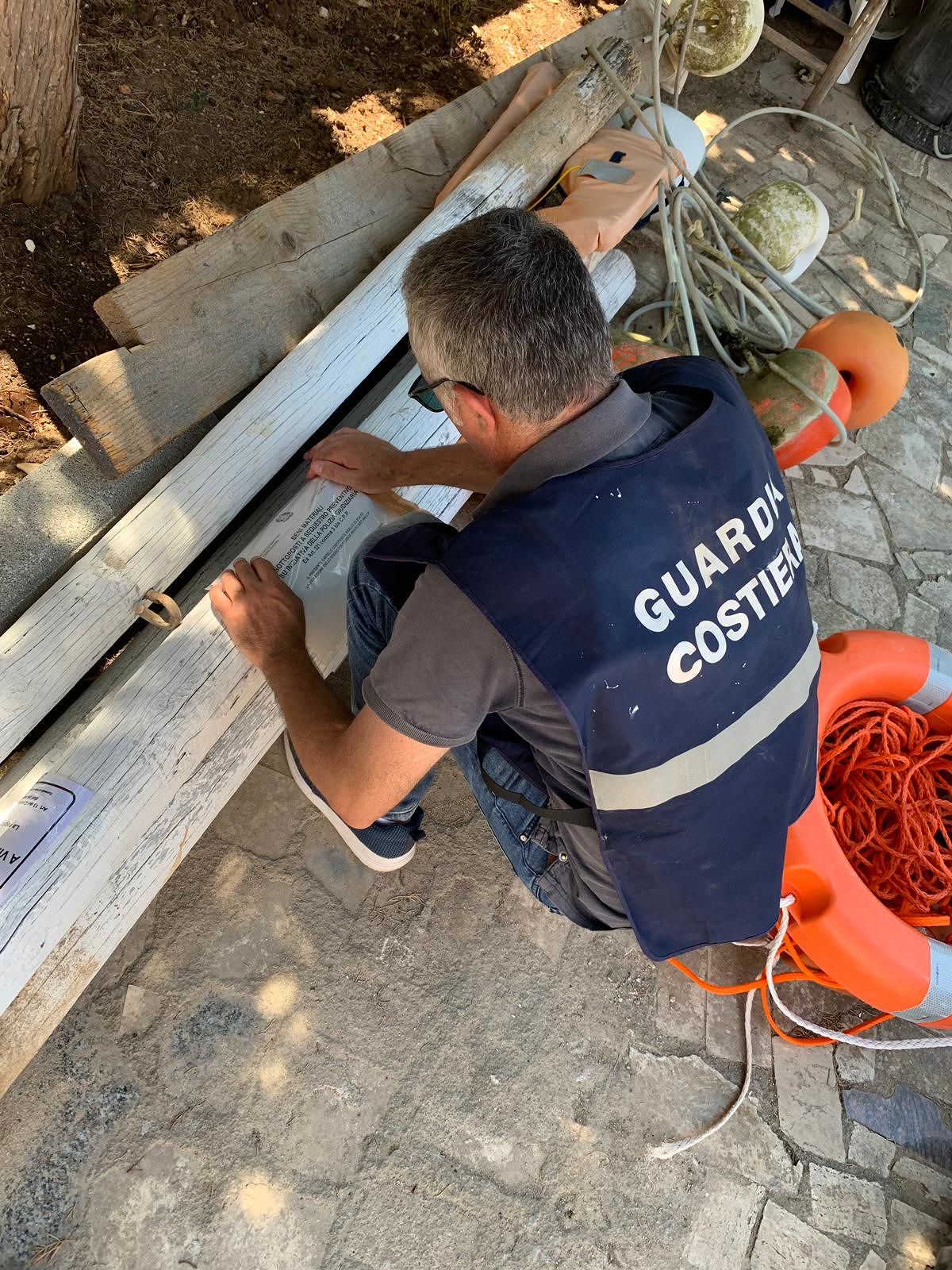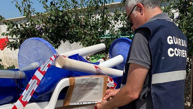 Sentito il magistrato di turno Francesca Miglietta, gli ufficiali di Polizia Giudiziaria, intervenuti sul posto, hanno provveduto al sequestro di: quattro pali in legno di delimitazione dell’area demaniale; sette ombrelloni e altrettanti copri ombrelloni muniti di supporto; 18 sdraio di colore bianco; un pattino di colore rosso recante la scritta salvataggio; due remi; un rastrello; due salvagenti; quattro giubbotti di salvataggio; una postazione salvataggio sopraelevata tipo torretta; un palo dell’altezza di due metri a supporto della cartellonistica balneare della Capitaneria di Porto e della Regione Puglia; un palo in legno di tre metri e mezzo utilizzato a supporto dell’impianto di videosorveglianza composto da una videocamera wireless e visualizzazione a 360 gradi; tre gavitelli di delimitazione delle acque sicure e altrettanti gavitelli di colore rosso di delimitazione delle acque di balneazione.