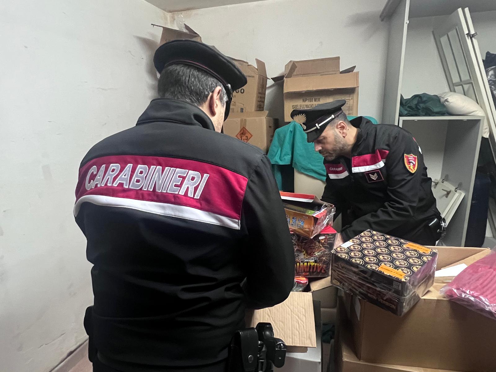 Durante la perquisizione, gli uomini dell’Arma hanno rinvenuto circa 500 chilogrammi di artifizi pirotecnici, alcuni dei quali non classificati, manomessi e alterati, custoditi in modo pericoloso nel garage interrato dell’immobile. Nel locale sono stati trovati anche strumenti e materiali per la fabbricazione artigianale di esplosivi, pronti all’uso.