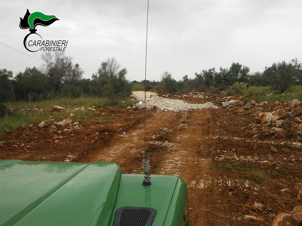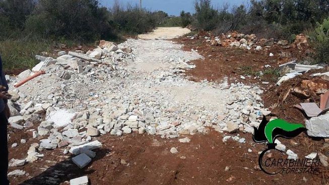 Gli uomini in divisa hanno “notato” una strada di 80 metri circa di lunghezza e 5 di altezza, utilizzata per entrare nel terreno, realizzata con mezzi meccanici con cui era stata rimossa la roccia. Non solo, la via era stata livellata utilizzando tufo e materiale di risulta, composto da rifiuti speciali non pericolosi tra cui mattoni in cemento, piastrelle, materiale plastico e ferroso. Una piccola discarica, inoltre, è stata scoperta in un’altra zona del terreno dove erano stati abbandonati diversi rifiuti.