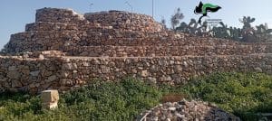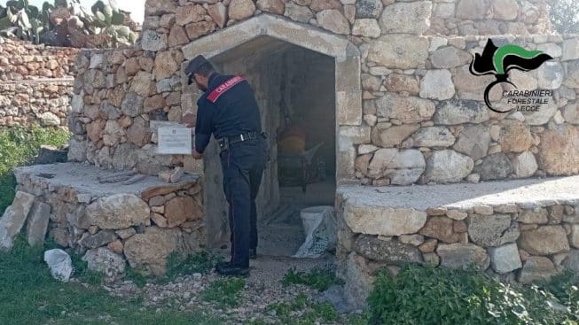 Nel cantiere i Carabinieri hanno accertato essere in corso lavori di ristrutturazione di una vecchia “pajara”, con adiacente “specchia” (tipologia di costruzione rurale, tipica salentina, di antichissima origine). Le opere edili, eseguite in pietra e malta cementizia, a costruzione anche di una gradonata, interessavano una superficie di circa 800 metri quadri, mentre l’ altezza massima dei vecchi fabbricati da rimaneggiare raggiungeva i 6 metri.
