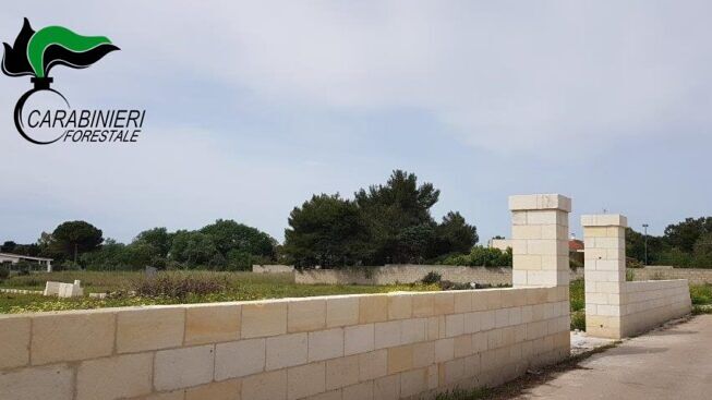 Nello specifico l’uomo avrebbe realizzato un muro di recinzione di circa 60 metri di lunghezza in muratura di conci di tufo dello spessore di 25 cm; 2 ingressi carrabili e 4 colonne dell’altezza di 2,50 ml e sezione 0,75×0.75 in conci di tufo di spessore di 25 cm, inoltre un massetto cementizio d circa 1 ml, con conseguente trasformazione dello stato dei luoghi in agro di Melendugno a Torre dell’Orso