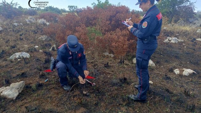 Dopo accertamenti svolti sul campo con l’ausilio delle immagini registrate da telecamere, i Carabinieri Forestali del Nucleo di Gallipoli sono giunti all’identificazione del presunto autore dell’incendio sviluppatosi il 27 luglio scorso in contrada Bernardini in agro di Nardò, deferendolo, in stato di libertà, alla Procura della Repubblica di Lecce.
