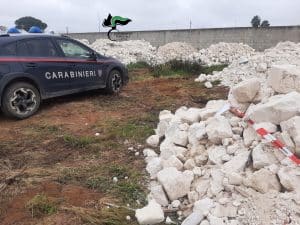 I Carabinieri Forestali del Nucleo di Maglie hanno individuato, all’ interno di un lotto di circa 3.000 metri quadri della zona industriale di Soleto, delimitato da una muratura, un’area dove erano depositati rifiuti in modo incontrollato.