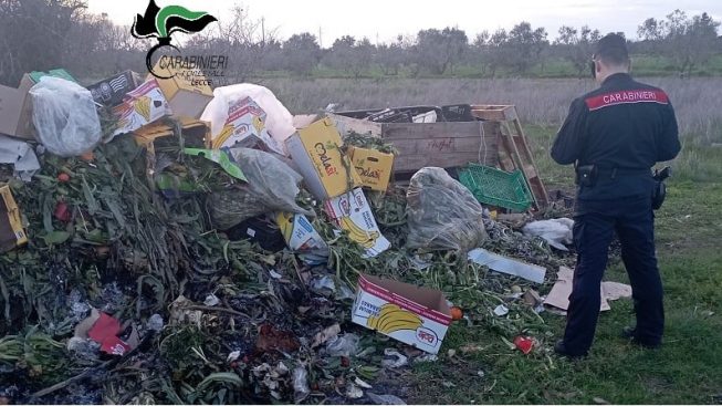 Così una pattuglia del Nucleo di Gallipoli, entrando nelle campagne di Matino, ha individuato una vasta area, della superficie di 400 metri quadri, trasformata in deposito incontrollato di rifiuti: cumuli di scarti vegetali (prodotti ortofrutticoli), cassette, contenitori di cartone, sacchi di plastica, oltre a vetri frantumati e varie tipologie di materiali di risulta.