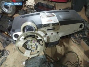 Oltre all’Alfa Romeo Stelvio rubata, nella area, vasta almeno 50 are, erano stati parcheggiati molti automezzi e pezzi meccanici e, all’interno, vi era un edificio di costruzione abusiva nel cui garage seminterrato era stata ricavata un’officina abusiva adibita allo smontaggio di autovetture di probabile provenienza illecita.