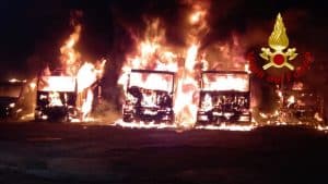 È stata una notte impegnativa per i Vigili del Fuoco del distaccamento di Gallipoli chiamati a domare un incendio scoppiato all’interno di un deposito della società che si occupa della raccolta dei rifiuti nella Città Bella. Non è stato un intervento facile per la squadra, giunta in località «Masseria Bianca» quando l’orologio aveva da poco segnato le fiamme. Sono state necessarie due autobotti per contenere il rogo che stava distruggendo 10 mezzi della nettezza urbana, parcheggiati nel piazzale dell’azienda. 7 erano completamente avvolti dalle fiamme, i restanti 3 stavano subendo danni da irraggiamento termico solo perché ‘vicini’.
