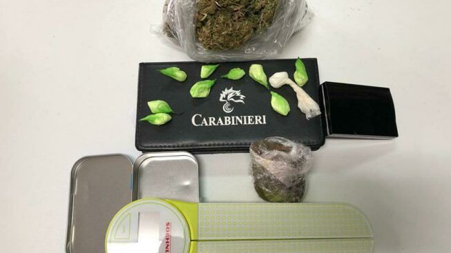 Il controllo dei militari, impegnati un servizio finalizzato al contrasto dei reati in materia di stupefacenti, si è concluso con la scoperta di 44,5 grammi di hashish, 6 grammi di cocaina suddivisa in 9 dosi preconfezionate, 38 grammi di marijuana e 2,3 grammi di sostanza da taglio.