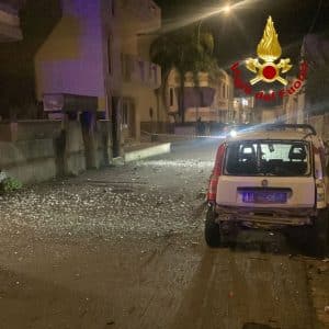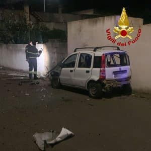 Giunti sul posto, i Caschi Rossi ha trovato un Fiat Panda Van completamente dilaniata a causa della deflagrazione e hanno svolto un sopralluogo della zona interessata.