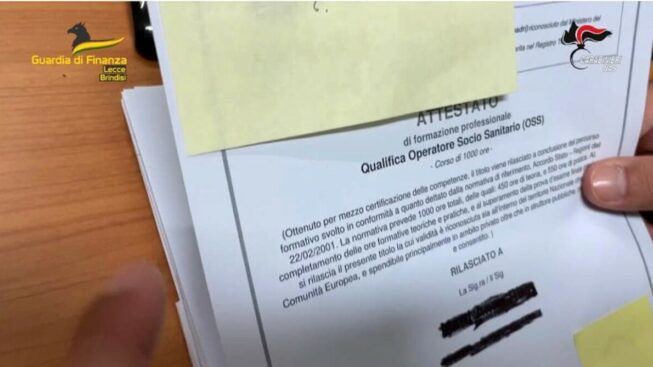 Nello specifico, la contestazione riguarda il rilascio di attestati ritenuti materialmente falsi, recanti loghi, immagini e timbri contraffatti dell’Unione Europea, delle Regioni Puglia, Abruzzo e Campania, del Ministero del Lavoro e delle Politiche Sociali, del Ministero dello Sviluppo Economico, a favore di ignari corsisti dislocati su tutto il territorio nazionale, convinti di poterli utilizzare per attività lavorative presso strutture sanitarie pubbliche e private.
