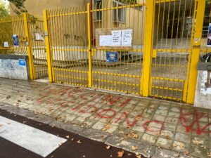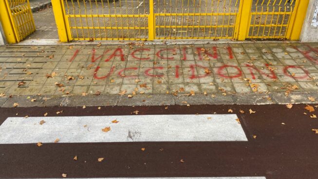 Nella mattinata di oggi, infatti, sul marciapiede all’ingresso dell’istituto leccese, di fronte al cancello, si è presentata una scritta che recitata: “I vaccini uccidono”.