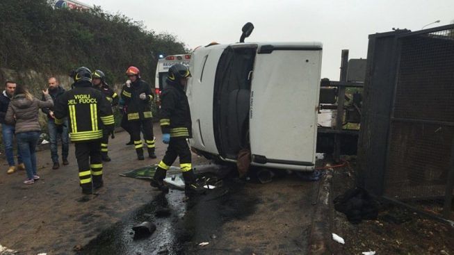 Ma andiamo con ordine. Le lancette dell’orologio segnavano da poco le 15.30, quando per cause ancora tutte da accertare un furgone su cui viaggiavano i due operai ha perso il controllo e dopo aver sbandato pericolosamente si è ribaltato su un fianco a pochi metri dal centro commerciale Mongolfiera. Nel folle zig zag del camioncino sulla carreggiata, nessun altro mezzo è rimasto coinvolto.