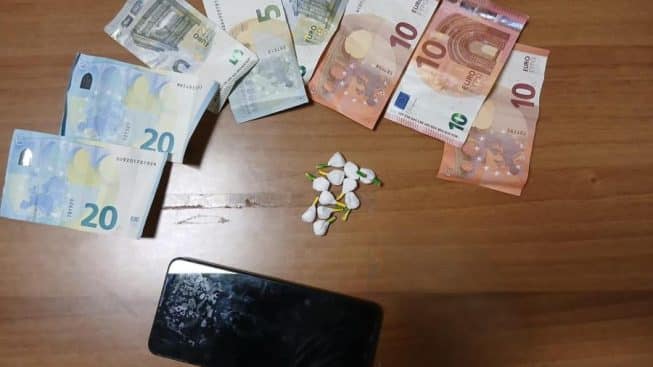 La successiva perquisizione, estesa anche al veicolo dell’uomo, ha permesso di rinvenire 11 involucri di cocaina, pronti per la vendita, per un peso totale di 3,5 grammi; n contenitore in plastica (tipo ovetto Kinder) utilizzato per occultare la droga e laa somma di 85 euro in banconote di piccolo taglio, ritenuta provento dell’attività illecita.