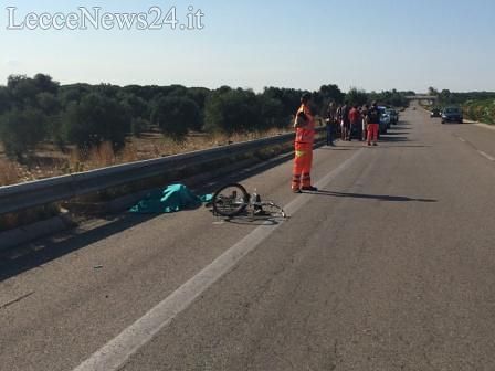 Sulla strada a scorrimento veloce che da Gallipoli porta a Maglie, un 47enne, Fabio Fiorentino, ha perso la vita nello scontro tra la sua bicicletta ed un furgone.