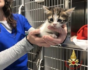I vigili del fuoco non si sono persi d’animo ed hanno deciso di iniziare una delicata operazione di rianimazione. Dopo qualche minuto il gattino ha reagito iniziando a muovere l’addome ed aprire gli occhietti.