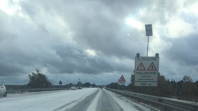 Alcuni automobilisti risultano bloccati sulla strada statale 16 che collega Lecce a Maglie. Dei veri e propri disagi alla circolazione a causa di un'improvvisa grandinata avvenuta nella notte appena trascorsa. L'asfalto risultava, poche ore addietro, completamente ricoperto d'un "manto bianco" nel tratto situato nei pressi delle svincolo per Maglie. Adesso il ghiaccio sta cominciando a sciogliersi, sebbene la parola d'ordine, in casi del genere, sia solo e soltano "prudenza". Molte, infatti, le persone che utilizzano la propria automobile per recarsi a lavorare nel capoluogo salentino. I quali, purtroppo, stanno trovando numerose difficoltà a raggiungere il loro ufficio. Al momento non si registrano nemmeno sinistri in relazione al fenomeno.