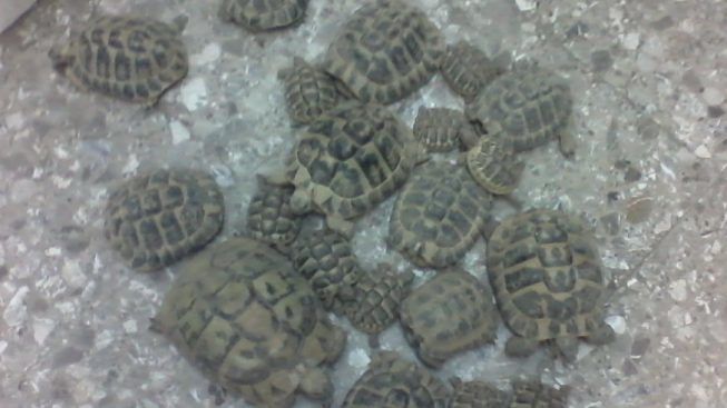 Uno dei carabinieri operanti ha notato, tra le gambe di Pasquale una busta di plastica bianca piuttosto capiente e piena: nella busta 20 tartarughe terrestri di varia taglia ancora vive.