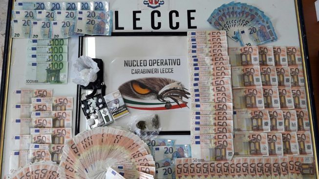 All’interno dell’abitazione è stato rinvenuto, inoltre, materiale per il confezionamento delle dosi ed un bilancino. Successivamente in una borsa/tracolla posta nelle vicinanze del letto, su un mobile, si rinveniva la somma di 10.700 euro in contanti, in banconote di vario taglio. Gli uomini dell’Arma considerano il denaro provento dell’attività di spaccio.