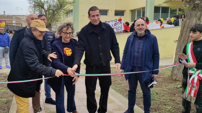 Per inaugurare un nuovo campo di calcetto, realizzato all’interno degli spazi dell’Istituto scolastico, è arrivato il capitano del Lecce Federico Baschirotto, accompagnato dal team manager Claudio Vino e dal direttore generale del Lecce Calcio Giuseppe Mercadante.
