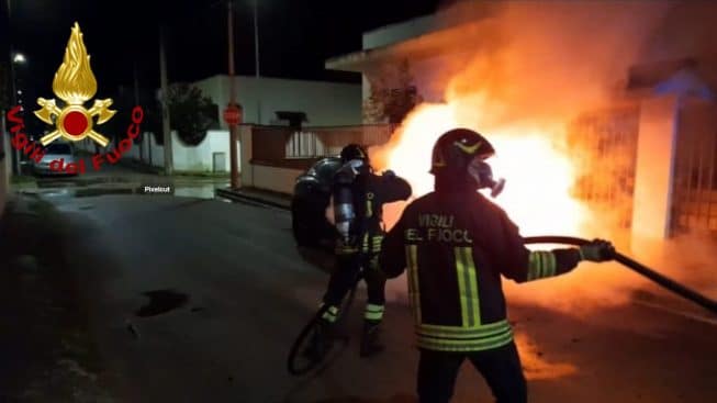 Il primo intervento alle 00:10 circa a Taviano, in Via Giacomo Puccini, 11, per l’incendio di un’autovettura Hyundai Santa Fe.