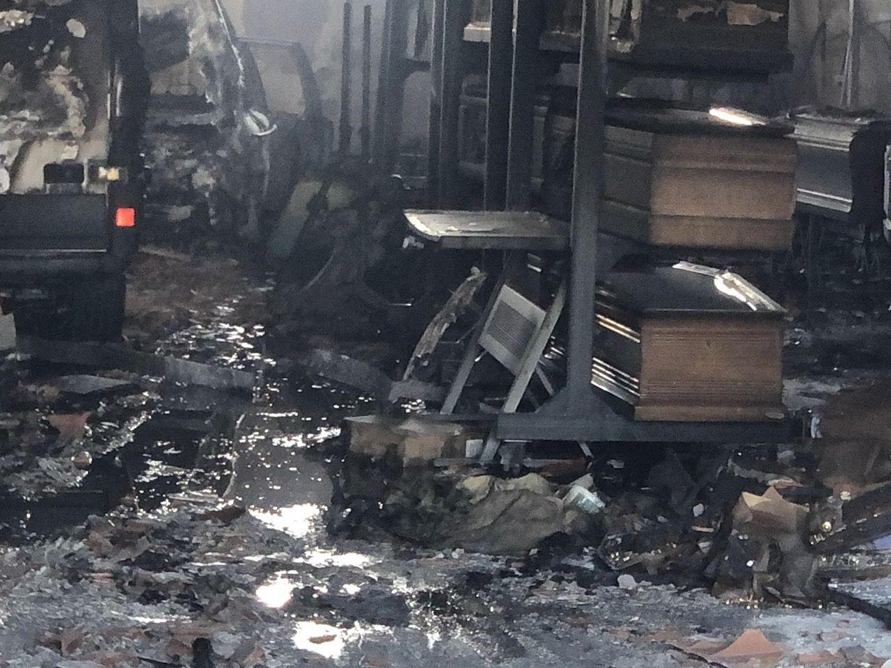 I danni sono stati ingenti, nel rogo sono andate distrutte 20 bari, così come un carro funebre.