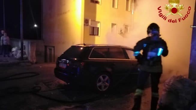 Le fiamme hanno interessato la sola parte anteriore dell’autovettura, parcheggiata in una posizione isolata.