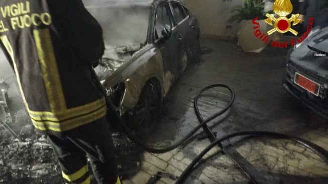 Il veicolo, parcheggiato all’interno del cortile un’abitazione, è stato gravemente danneggiato dalle fiamme. A causa dell’irraggiamento, anche la parte anteriore di un’altra autovettura, una Porsche, ha riportato danni.