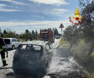 La macchina è andata totalmente distrutta divorata dal fuoco, per il conducente dell’auto nessun danno fisico, solo e soltanto un grande spavento.
