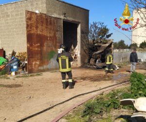 Domenica di lavoro per i Vigili del Fuoco del Comando Provinciale di Lecce. Ad andare a fuoco un deposito di attrezzature agricole nel comune di Cavallino, alle porte del capoluogo salentino.