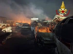 L’incendio è divampato all’interno dell’Autodemolizioni Demol Sud, sita lungo la SP 142 Vernole – Acquarica di Lecce, intorno alle 02:52.
