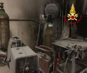 Le operazioni di spegnimento si sono rese difficili, anche a causa della presenza di due bombole di argon.