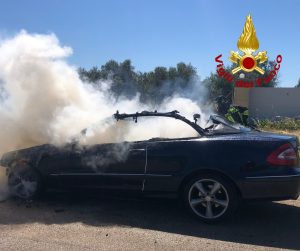 Le lancette dell’orologio avevano superato da poco le 14.00, quando, in Via San Nicola a Lecce, un’autovettura, una Mercedes Clk, mentre percorreva la strada, ha immediatamente preso fuoco.