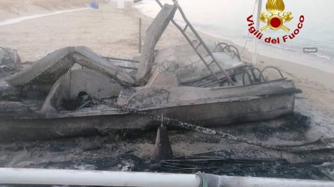 Alle prime luce di oggi, le lancette dell’orologio segnavano le 05:29, una squadra dei Vigili del Fuoco del Comando provinciale di Lecce è stata chiamata a intervenire sulla spiaggia della marina di San Giovanni, per domare un incendio che ha completamente distrutto quattro pedalò e un pattino di salvataggio, di proprietà di una società privata.