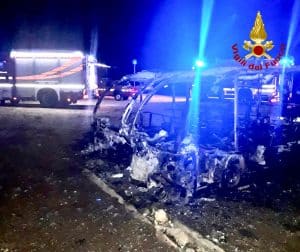 Ancora non sono chiare le cause che hanno causate i fatti e come sempre spetterà agli inquirenti stabilirle e al momento sono ancora in corso le investigazioni. Nella nottata appena trascorsa, le lancette dell’orologio segnavano all’incirca le 24.00, i Vigili del Fuoco del Distaccamento di Gallipoli, sono stati chiamati a intervenire a Nardò, dove, in Contrada Masseria Torre Nuova, hanno preso fuoco due pulmini elettrici, di proprietà del Comune, utilizzati per il trasporto dei turisti, all’interno del parco di Porto Selvaggio.