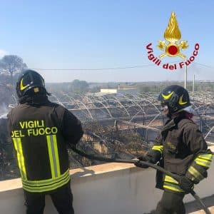 Gravi i danni dell’incendio che si è sviluppato nella giornata odierna a Taviano. Ci sono volute oltre quattro ore per domarlo. Le fiamme, partite da alberi e sterpaglie, hanno raggiunto e divorato tre serre. E’ dovuta intervenire una squadra di Vigili del Fuoco di Gallipoli unitamente ad una di Ugento, insieme al supporto di un’autobotte, per spegnere il fuoco che stava arrivando pericolosamente verso alcune abitazioni presenti in zona. Importante è stato anche il coinvolgimento di personale della Protezione Civile di Matino e Casarano.
