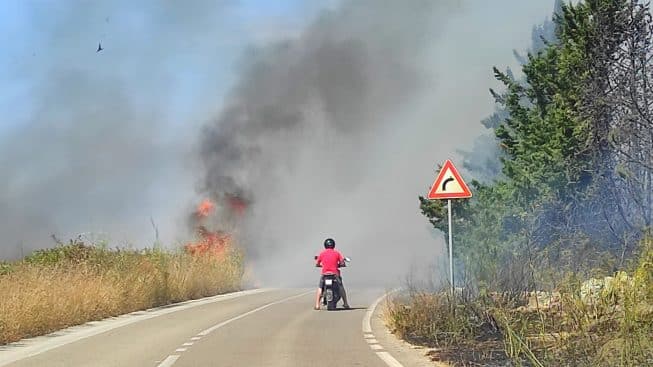 Uno scooter ha attraversato in velocità la coltre di fumo, un’auto è passata sull’asfalto rovente tra lingue di fuoco alte 4/5 metri. I vigili del fuoco chiamati anche oggi ad un lavoro duro tra campagne e strade litoranea. Siamo in località masseria Capriglia a 300 metri dal Blubay di Castro. Lì dove fino ai primi anni novanta era attivo il cementificio del gruppo Ferruzzi ora totalmente dismesso la campagna si è trasformata in un girone dantesco.