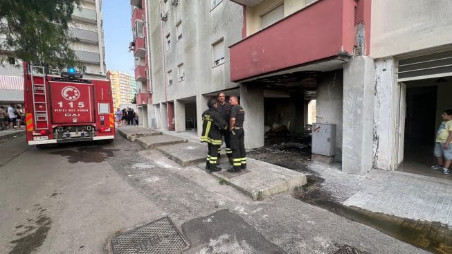 Vanno in fumo i mobili accatastati nel porticato e le fiamme interessano anche i piani alti dello stabile. Momenti di autentica paura quelli vissuti in Via Pistoia nella Zona 167 B di Lecce per un violento incendio sviluppatosi all’ improvviso in un torrido e ventoso pomeriggio di fine giugno. Le fiamme hanno interessato i mobili che erano innavertitame te depositati sotto ad un portico e il fumo ha invaso le abitazioni dei piani superiori. Immediato lo sgombero di due palazzine da parte dei Vigili del Fuoco sopraggiunti sul posto.