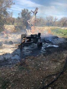 Successivamente, sul luogo dei fatti sono arrivati anche i Vigili del Fuoco del Comando provinciale di Lecce, che si sono messi al lavoro anch’essi per domare le lingue di fuoco e i Militari dell’Arma dei Carabinieri.